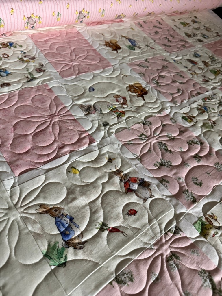 *I offer computerized Edge to Edge designs starting at a flat rate of 0.023 per square inch for simple quilting designs. For example, a quilt measuring 60โx 75โ. 60×75=4500 x 0.023= $103.50
